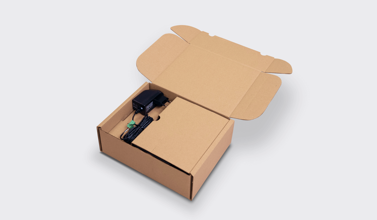 Vonkajšia krabica aj fixačná vložka sú z vlnitej lepenky. Nie je potrebná žiadna plastová fixácia, žiadne „bubliny“, žiadne peny. Zákazník tak po rozbalení rieši iba papier – a buď obal znovu použije na vrátenie, alebo ho jednoducho vytriedi. (A vďaka tomu, že ide o jeden materiál, je triedenie jednoduché aj pre laikov.)