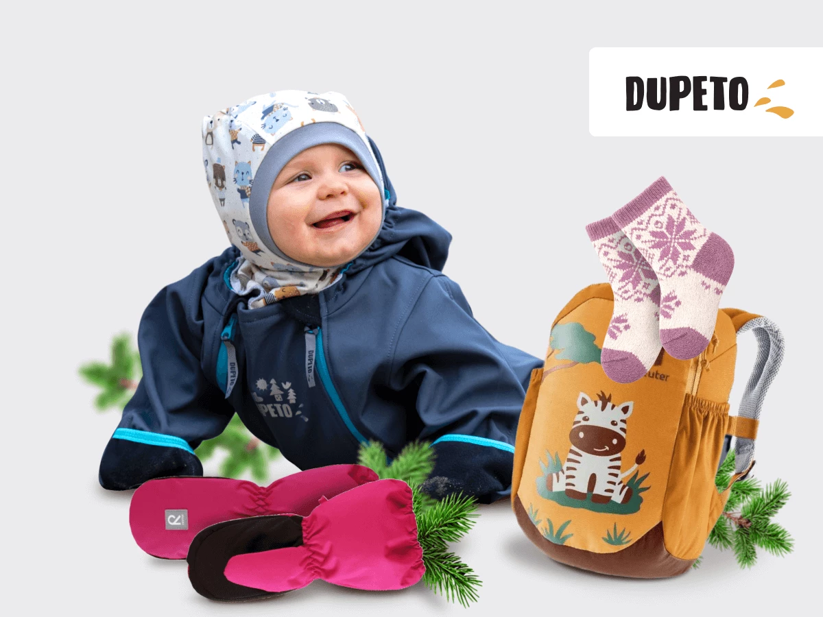 Dupetoshop.sk je česká značka detského oblečenia do každého počasia, za ktorou stoja dve vynaliezavé mamy. Šijú v ČR parádne funkčné kúsky pre malých dobrodruhov – softshellové bundy, rastúce overaly, merino čiapky a množstvo ďalších vychytávok, ktoré niečo vydržia. V Dupete sa tak nemusíš báť žiadnej kaluže ani snehovej fujavice – ich oblečenie zvládne minimálne dve sezóny a pritom vyzerá fakt štýlovo.