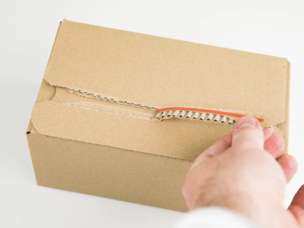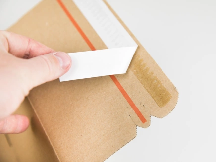 - rýchle a jednoduché uzavretie bez nutnosti dodatočných samolepiacich pások – integrovaná lepiaca páska bezpečne uzavrie horné chlopne krabice